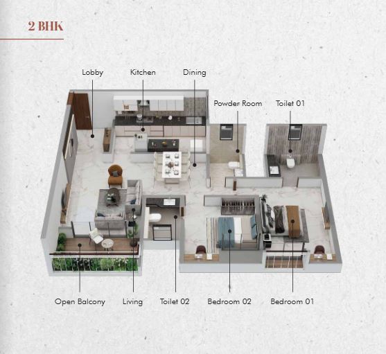 | 2 BHK | 960 Sq.ft | 99.01 Lakh (All Inclusive)* |